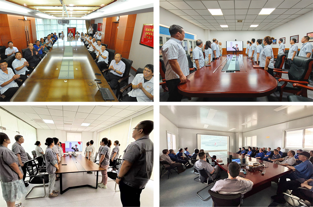 崔洪金出席阅兵式的同时,安达集团组织各部门各分公司人员在各自公司所在地观看阅兵式现场直播。集团总部及各分公司的会议室、办公区域等场所,都聚集了众多员工,大家怀着激动的心情,共同观看阅兵式的精彩画面。当整齐的方阵、先进的武器装备依次通过天安门广场时,全体人员心潮澎湃,现场不时响起热烈的掌声。