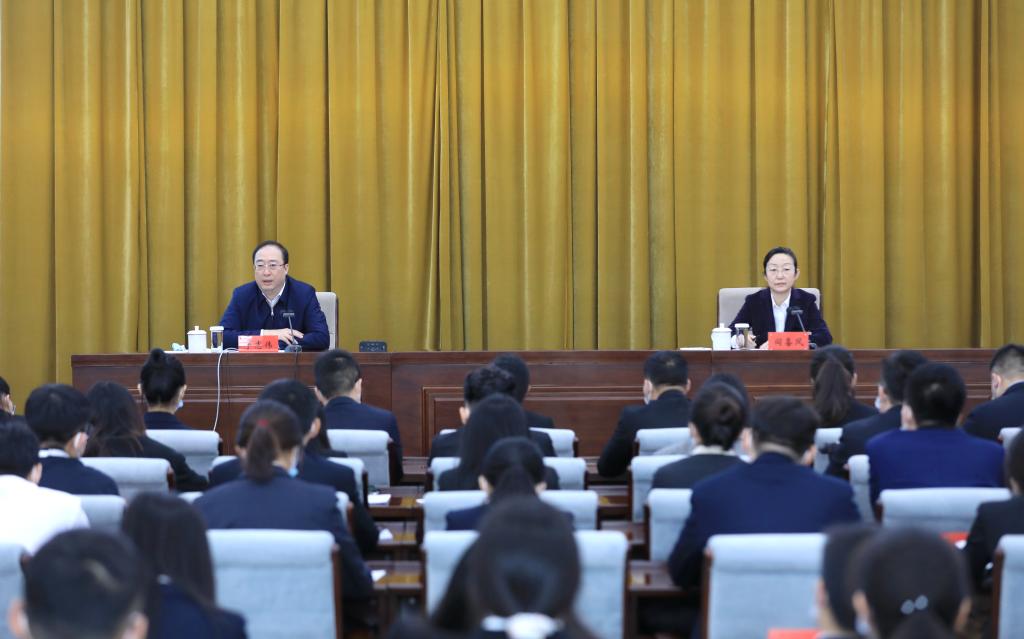 3月27日,2022年度省直定向选调生初任培训班(第1期)开班式在省委党校(省行政学院)举行。省委组织部副部长于志伟出席开班式并作动员讲话,教育长阎喜凤主持。