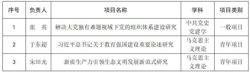 近日,2025年度国家社会科学基金年度项目立项结果正式公布。在申报竞争日趋激烈、党校系统立项率持续走低的背景下,我校(院)仍成功立项3项,其中一般项目1项、青年项目2项,展现了我校(院)在哲学社会科学研究领域的学科优势和扎实积累。