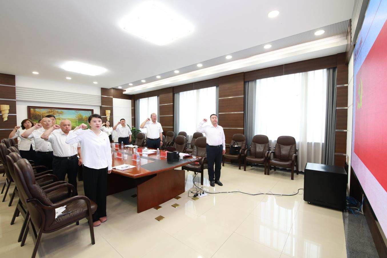 在庄严的党旗下,支部党员举起右拳,重温入党誓词。“每一次重温誓词都是一次思想淬炼,时刻警醒我第一身份永远是共产党员,第一职责是为党工作!”一位老党员激动地表示。铿锵誓言既是对初心的回溯,更是对使命的承诺。