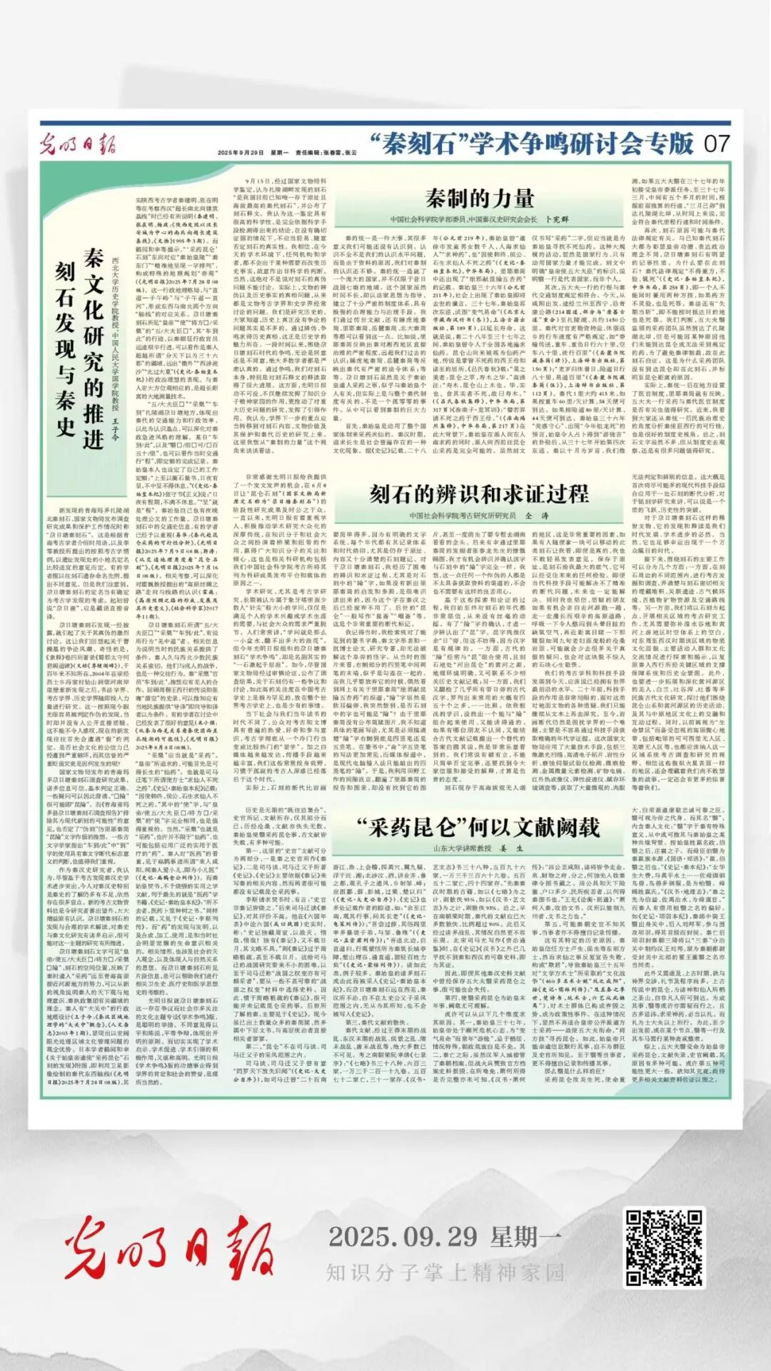 本次关于扎陵湖畔秦刻石的这场学术争鸣正是对光明日报传统的继承、文脉的发扬。