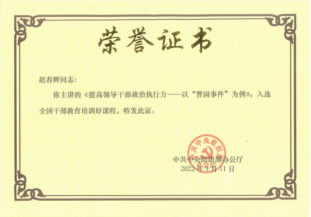 社会和文化教研部主任、教授赵春辉讲授的案例教学课程“提高领导干部政治执行力——以‘曹园事件’为例”入选2021年度中组部全国干部教育培训好课程。
