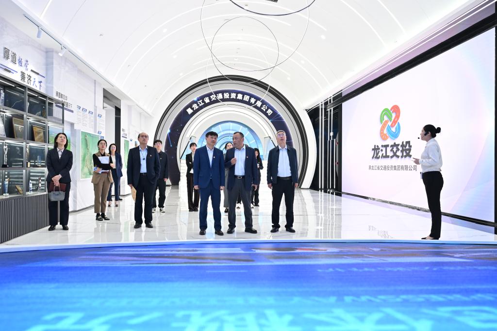 调研组来到省交投数智运营中心,观看了智慧公路管控服务平台、公路建设高质量发展数字化管控平台,了解了集团高速公路智慧化管理情况;在融媒体中心,观摩了龙江交投高速96969主播团队现场直播;在龙江交投联创展示中心,系统了解了集团发展历程、业务布局等情况。